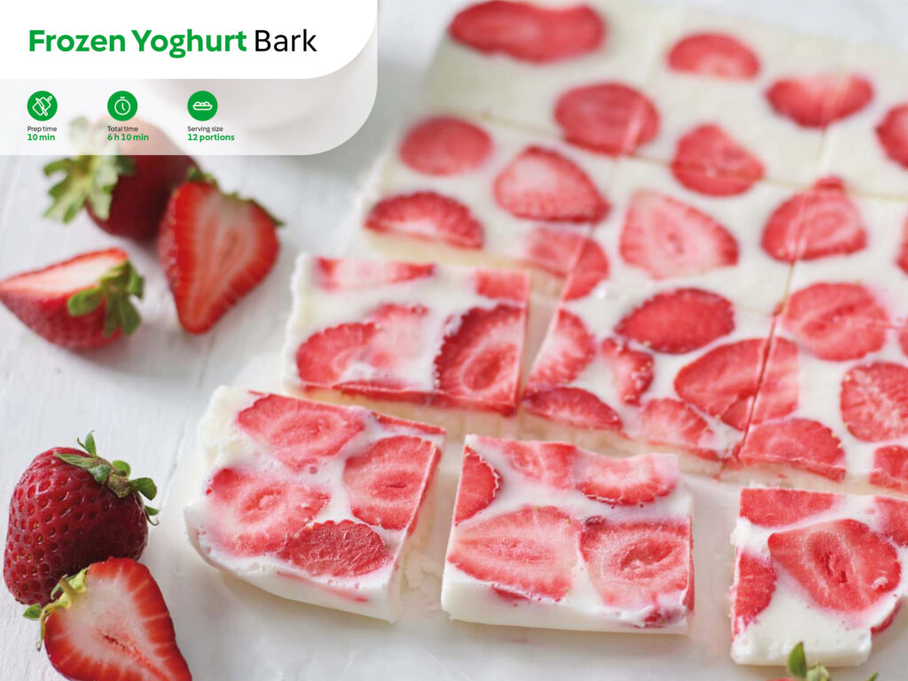 Sticking with a gut-friendly recipe, Frozen Yoghurt Bark is a quick and fun treat: spread Greek yoghurt on a tray, top with strawberries (and granola if you like), freeze, then break into chunks. Just 10 minutes of prep, the freezer does the rest!
