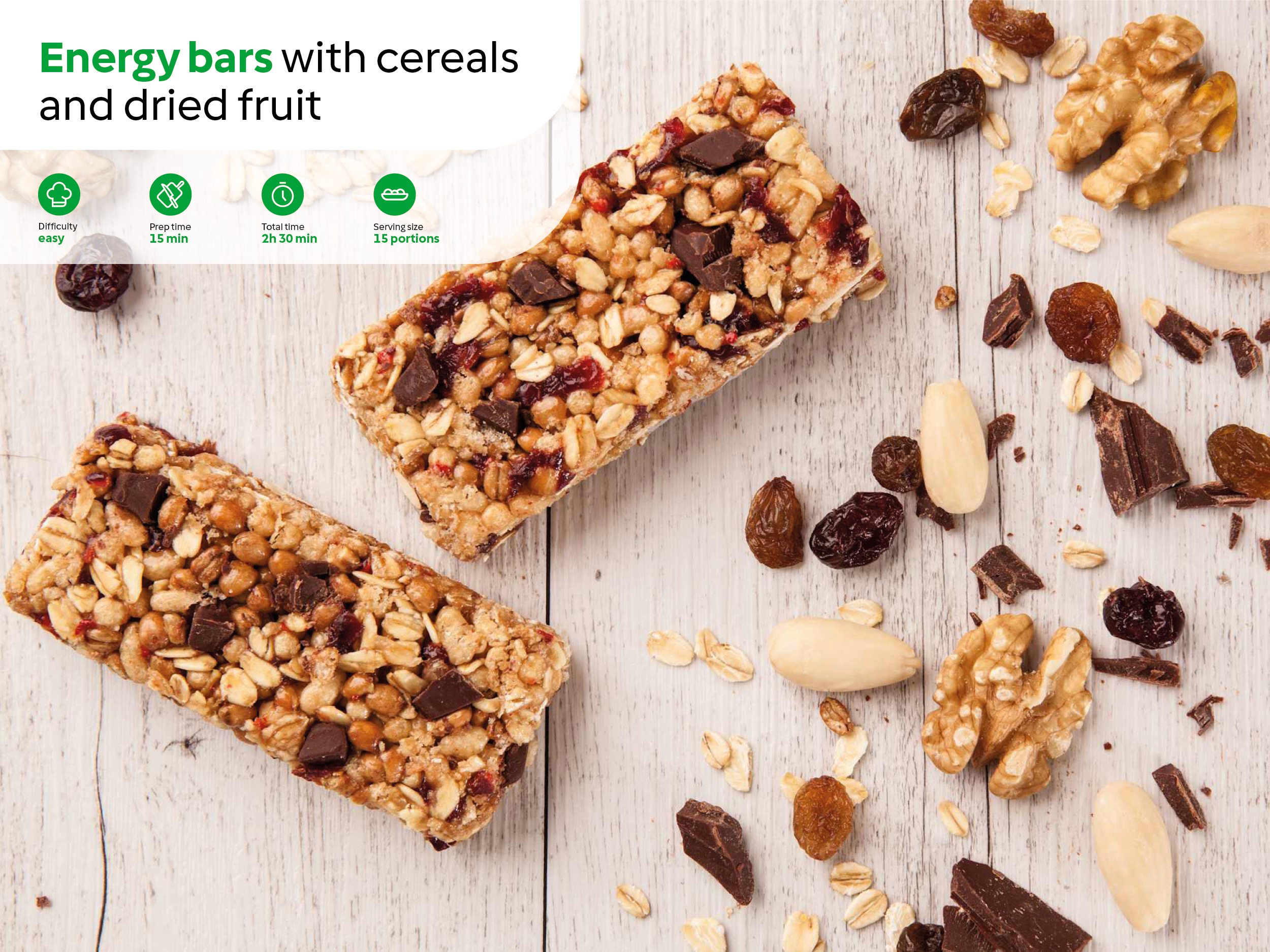 Like dates, nuts and dried fruits may be small but pack a lot of power. Nuts like almonds, walnuts, cashew nuts, pine nuts, and pistachios are a great source of protein necessary for cell repair and rejuvenation. They also provide many important vitamins and minerals and are among the best sources of omega-3 fatty acids, which are great for the heart and the brain. A great recipe everyone loves for Iftar is Energy Bars with Cereals and Dried Fruit.