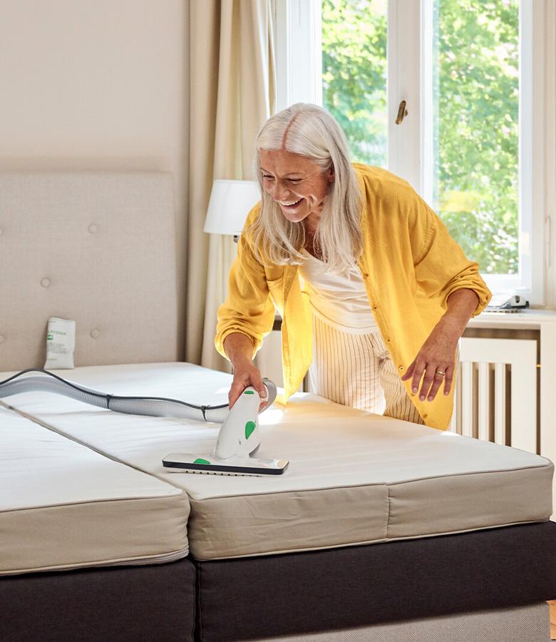 The Kobold MR440 is a specialized mattress and upholstery attachment designed to work with the Vorwerk Kobold cleaning system. It uses an integrated vibrating mechanism to loosen deeply embedded dust, allergens, and debris from fabric fibers, making it particularly effective for deep-cleaning mattresses.